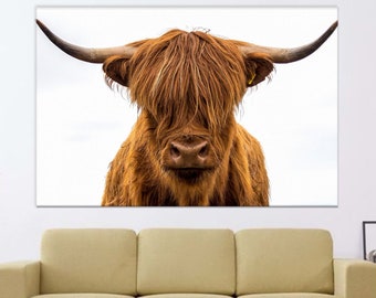Highland Cattle Long Hair Cow Highland Bull Animal Poster Nature Photography Instant Download Schilderij Koeien Kunst Koe