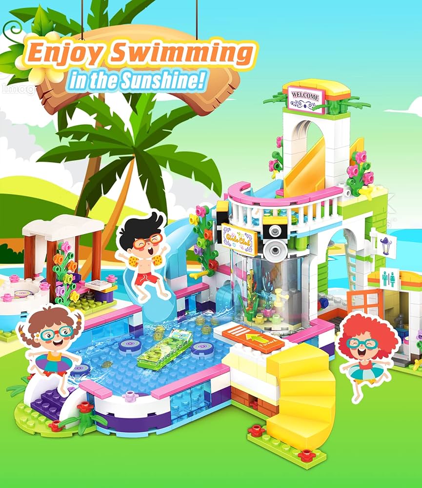 Amazon Com Friends Pool Party Hair Salon Building Kit For Girls Aged 6 12 Years Swimming Pool And Hairdressing Building Blocks Sets With Storage Box Christmas Birthday Gift For Kids Toddlers 1373 Pieces